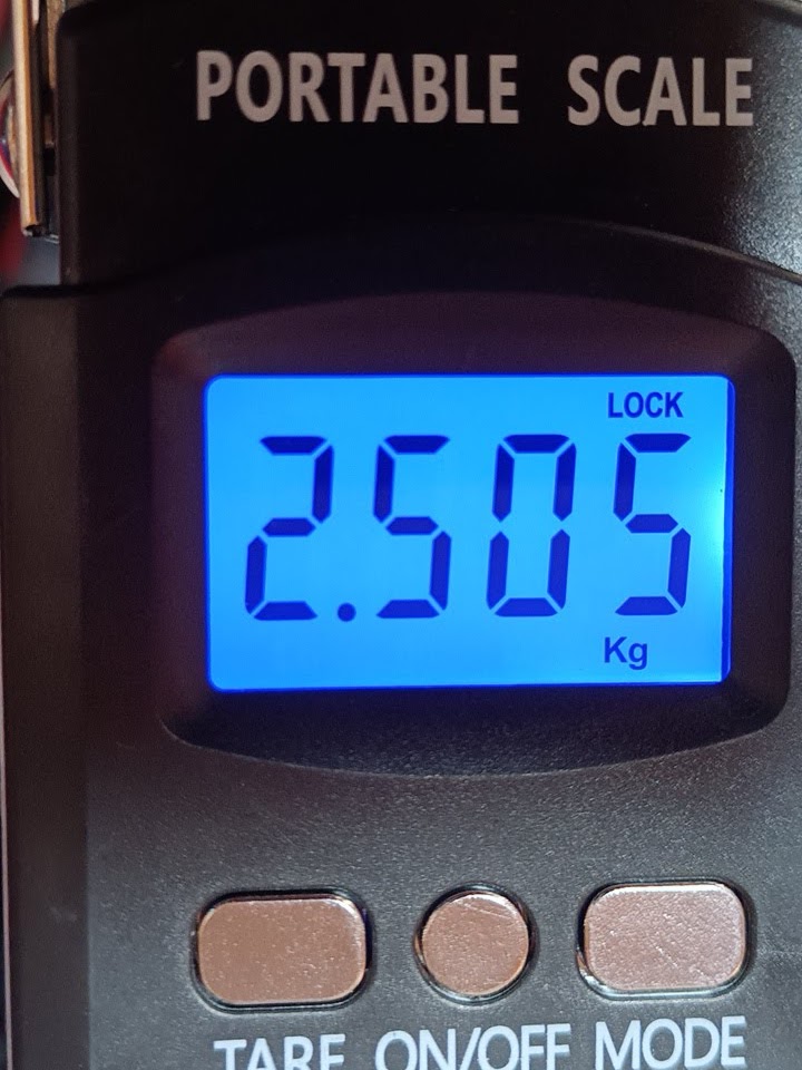以下の写真はCRF、RC24+1/2インチマスター、RC24+19mmラジアルポンプのクラッチレバーの重さをバネ秤(魚釣りとかで使うモノらしい)で測ったものだ。