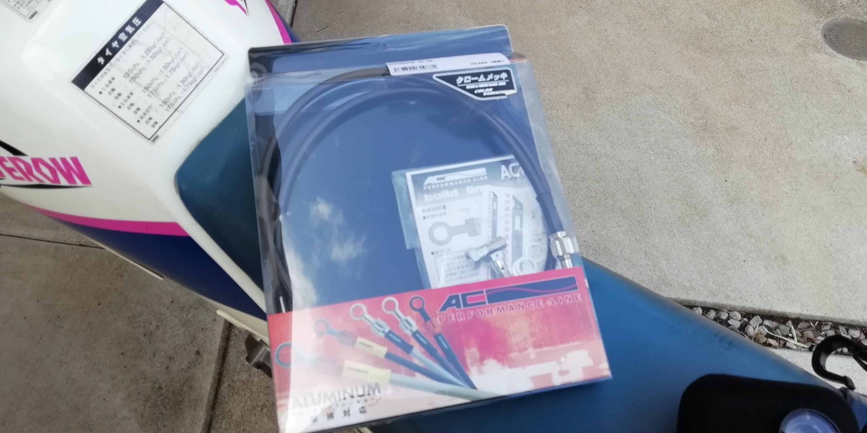 SEROWのフロントブレーキホースをステンレスメッシュに換えた。