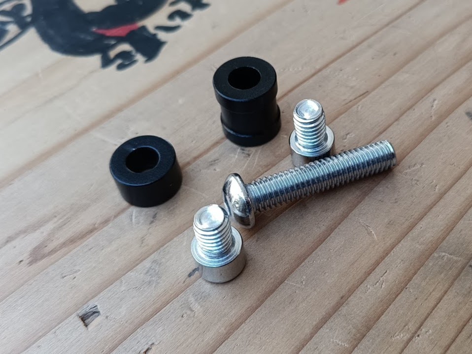 小さいネジは、シルバーのプレートを使わない場合にネジ穴を塞ぐ飾りネジだと思うけど、スペーサーと+のボタンボルトは何に使うのか分からない。