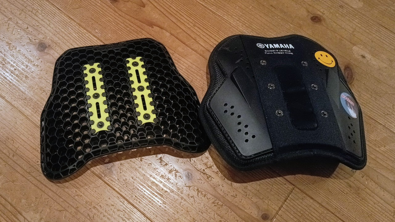 右のYAMAHA(コミネOEM)のが前に買ったやつで、とても軽いし装着感も良いのだが、風が抜けないのでメッシュジャケットを着ていてもメッシュが台無しで胸の部分だけ暑いwww