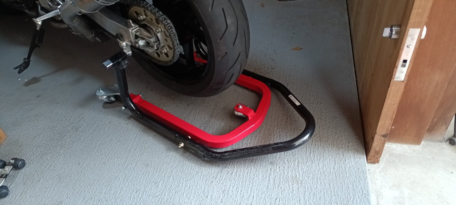 バイクドーリーをまた買い換えた。最初に買ったのはバイク全体を載せるタイプだったけれど、ドーリーにバイクを載せるのが大変だった。次に買ったのはストレート社製のメンテナンススタンドにキャスターが付いたタイプだった。
