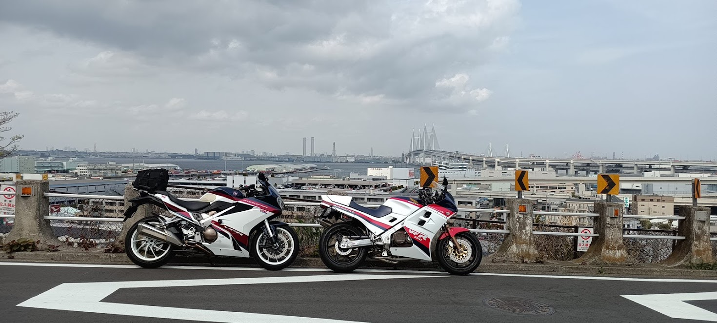 もう一つ今回嬉しかったのは、Twitterで知り合った豊橋のRC79乗りさんが参加してくれたことだ。前日の夜に連絡があったので、あまりお土産を用意できなかったけれど、来てくれて本当に嬉しかった。できれば食事も一緒に行きたかったけれど、帰宅しなければならなかったので、横浜市内名所プチツーリングに付き合っていただいた。
