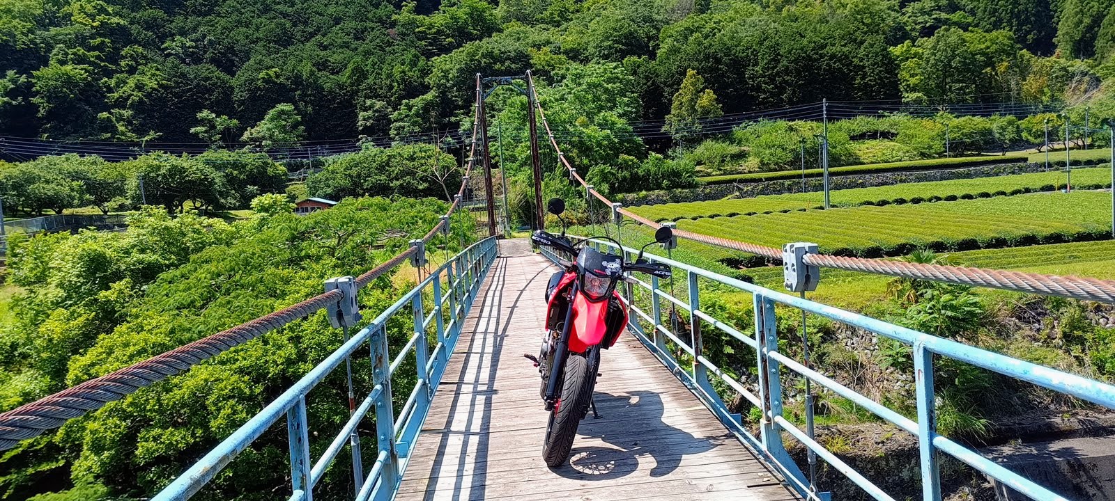 3か所目はYouTubeで見つけて行ってみたいと思っていた、バイクでも渡れる吊り橋だ。
