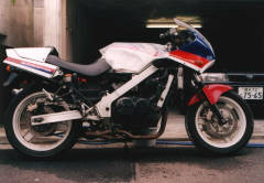 '98.08.13 「始動せず」 RC24のエンジン始動に挑戦したのですが、あえなく敗退しました(;_;) あと、1番シリンダのキャブのバキュームピストンが固着して動かなかったんですが、これは指で突っついてやったら直りました。 因みにセルはちゃんと回って、クランキングもしています。 |