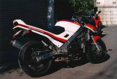 _おっと話しが前後しちゃいますけど、私はこのRC24に昔HRCが出していたレース用のシングルシートカウルを取り付けたいのです。カウルもノーマルではツマラナイので、FRP製のモノを探しています。 _実はHRCのシートカウルは、98年の6月に川口オートレース場で開催されたガレージセールで2個売りに出ていたと言う目撃情報があるのですが、私はこの話しを後日聞かされたので、入手できませんでした。