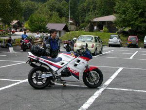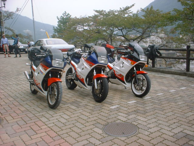 会社から帰ってきてからダッシュでASPに行って、RC24のエキパイのジョイントスプリングを直してもらいました。これでなんとかクラブの全国ミーティングに750ccで参加出来そうです。もしも直らなかったら、別に持っているSEROWで行こうかと思っていたのですが、SEROWで横浜から下呂温泉まで行くのはちょっと辛すぎます(^_^;)