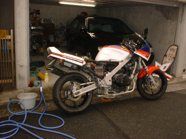 で、ガレージの奥に入れてあったRC36-2とRC24を入れ替えるついでに、RC36-2のエンジンが掛かるかどうかトライしてみました。