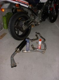 このオフシーズンのプロジェクトは、このマフラー組み直しとバッフル作成、生ガス臭の修理、中古ガソリンタンクの塗装で、出来ればFRPカウルも塗って取り付けたいです。んが、どうやらRC36-2もやっと修理が完了するみたいなので、この先このRC24をどうするかも考えないとなりません。